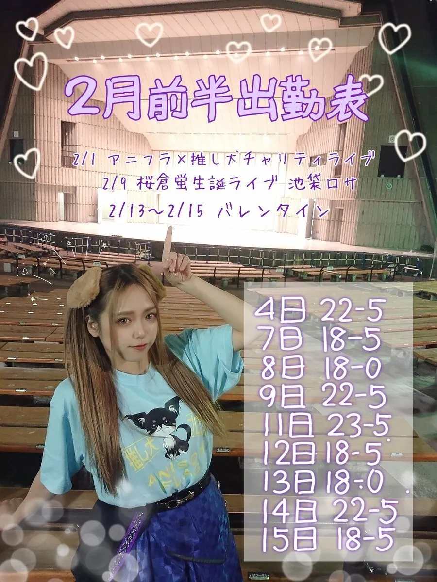 遅くなって申し訳ありません! 2月前半出勤です🦇 バレンタインデーもあるから楽しみ🍫 #アニソンバー #コンカフェ pic.x.com/jZPdItuaj5