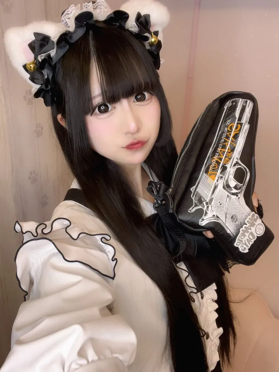 いん⋆⸜♱⸝⋆ 遅れました!! 銃型バッグ嬉しすぎてお給仕バックにしてる🔫🖤.*・゚ そして本日さなさんラストですт т ちうが入ってきた時から笑顔でいえーい!って手を振ってくれてちうもにこにこになりましたт т みなさんたくさん愛に来てください~!! #コンカフェ #コンカフェ営業 pic.x.com/91XbBASwQd