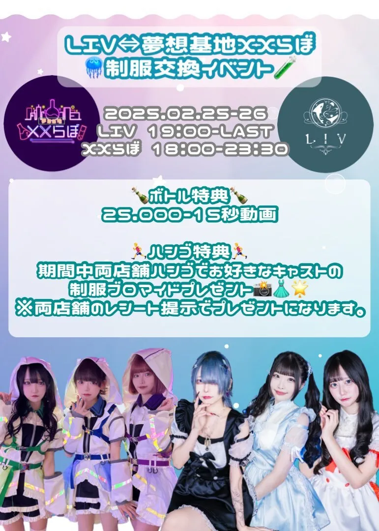 本日のイベント🧪📟 LIVさんと制服交換イベント🪼🫧 ぺけ初の制服交換イベント✨🌟✨ 普段は見れないメイド制服姿の研究員ちゃんが見れるよ♡ ハシゴでブロマイドもゲットしちゃおう💨 詳細は画像をチェック✅✅ ひな、こなた、かのん、虚無 #池袋 #コンカフェ pic.x.com/5iDTEKNEYo