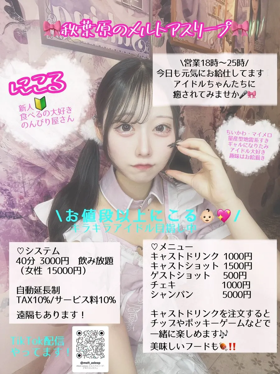 返信先:@shi_267 こんにちは⭐️コンカフェになってしまうんですけど、秋葉原でよろしかったらメルトアスリープのにこるいかがですか👶🏻🎀新人なので推してくれる方探してます🥺🔰 pic.x.com/7kE3WBICJl