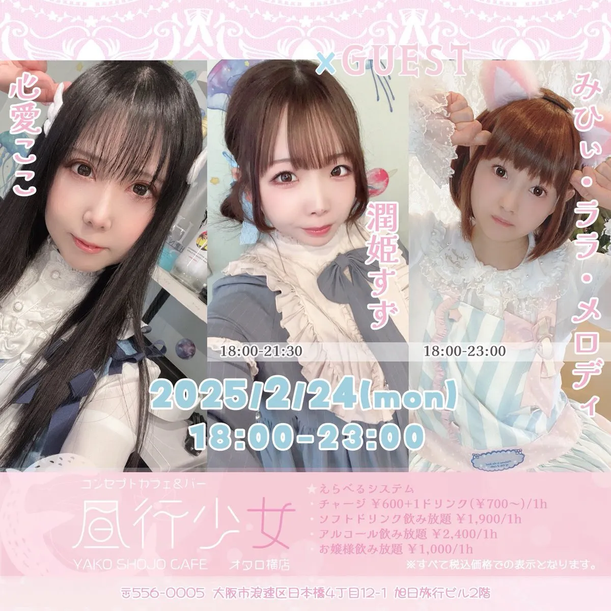 #コンカフェ #オタロ #オタロード 豊富なソフト・アルコールドリンク有🥃 ダーツ🎯ボードゲーム♟️ \昼行少女/ 2/24(mon) Guest 18:00-21:30 潤姫すず (@suzu0401 ) 18:00-23:00 みひぃ・ララ・メロディ ( @mihii_lalamelo ) 🏠大阪市浪速区日本橋4丁目12-1 旭日旅行ビル2階 pic.x.com/Vgsx2WKVti