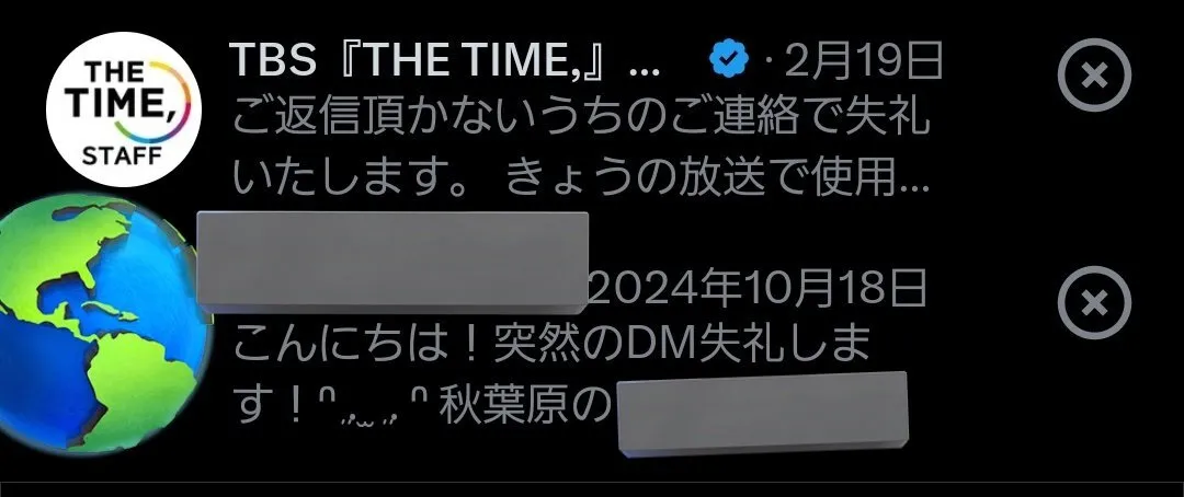 唯一のコンカフェ営業DMと並ぶTBSからのDM pic.x.com/XmyH9QcdjT