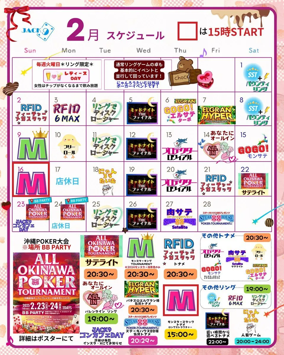 イベント詳細カレンダーはこちらです٩( 'ω' )و バレンタインイベントやコンカフェDAY、大型ポーカー大会などなど…💕 今月も盛りだくさんです✌︎('ω'✌︎ )( ✌︎'ω')✌︎ pic.x.com/bMDMlJPYr9