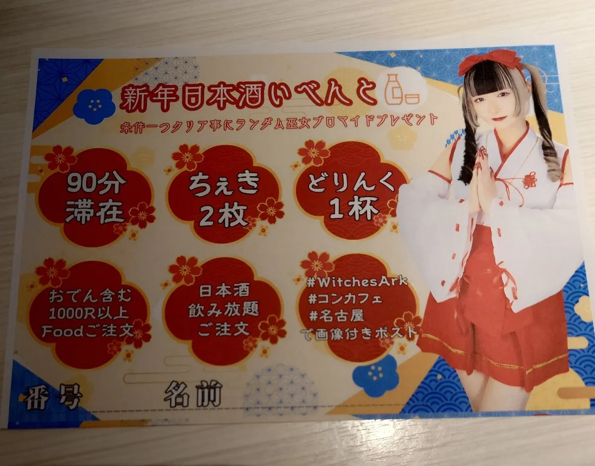 WitchesArk 新年日本酒いべんと 1日目開催中です🍶 日本酒飲み放題 1h4000R 3h9000R 限定Food おでん3種 500R 5種 900R #WitchesArk #コンカフェ #名古屋 pic.x.com/KCLyqP04Ru