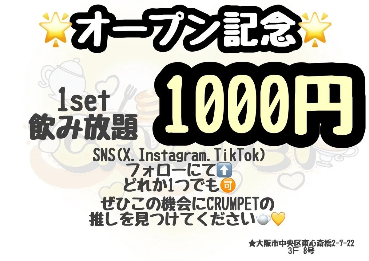 返信先:@____05218 はじめまして!ミナミに今月できたコンカフェのCRUMPETとかどうでしょうか!! 初回1時間1000円で飲み放題です𐔌՞・·・՞𐦯 pic.x.com/evF8HLrD8p
