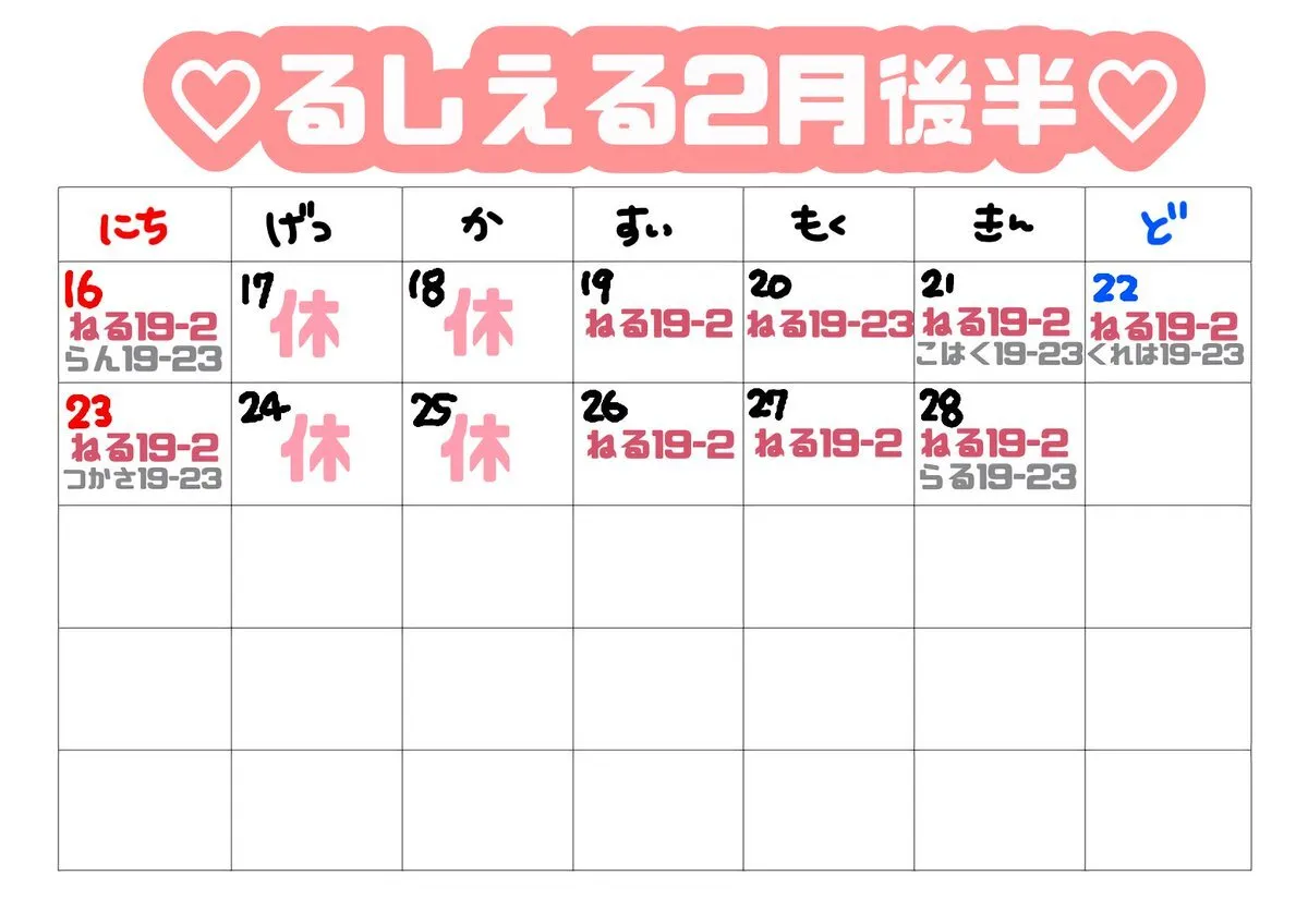 【2月後半予定🗓】 ⏰19:00~2:00 お問い合わせはねる(@yokuneru23)まで✉️ 大阪府大阪市中央区宗右衛門町1-7辻極ビル3階 #ミナミ #宗右衛門町 #コンカフェ pic.x.com/fGBipoy7CK