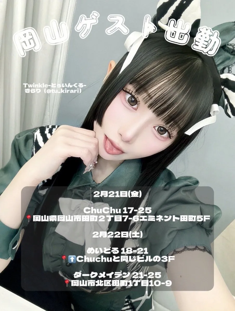 出勤してます!! きらりちゃんゲストです!! めためためた可愛い😖😖 ご帰宅お待ちしてます! #岡山 #コンカフェ #岡山コンカフェ #自撮り界隈 pic.x.com/l7sVtDuAd2