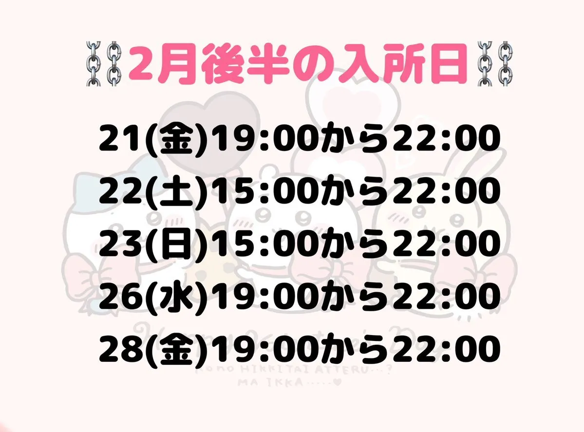 ⛓️2月後半の入所日⛓️ バレンタインイベントなどなど、2月前半も沢山遊んでくれてありがとうございました🎵 最近あったかくなってきて嬉しい気持ちです😚もっとお出かけしやすい気温になったらいいな💭 後半もちまちまおりますので、構ってください❣️ お待ちしております🙂↕️ #コンカフェ #秋葉原 pic.x.com/8skNHBvfzR