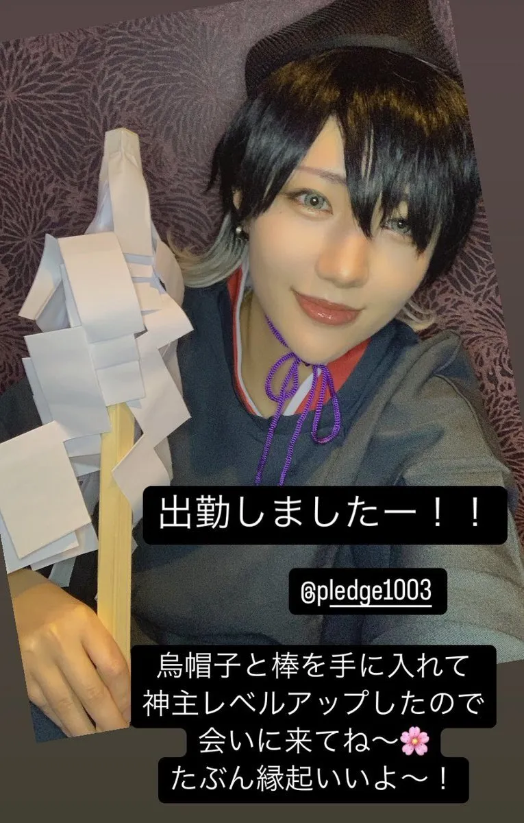 出勤しましたー! 烏帽子と棒を手に入れて神主レベルアップしたので会いに来てね〜🌸 たぶん縁起いいよ…!✨ #仙台 #男装 #コンカフェ #国分町 pic.x.com/OOtTSBr97n x.com/pledge1003/sta…