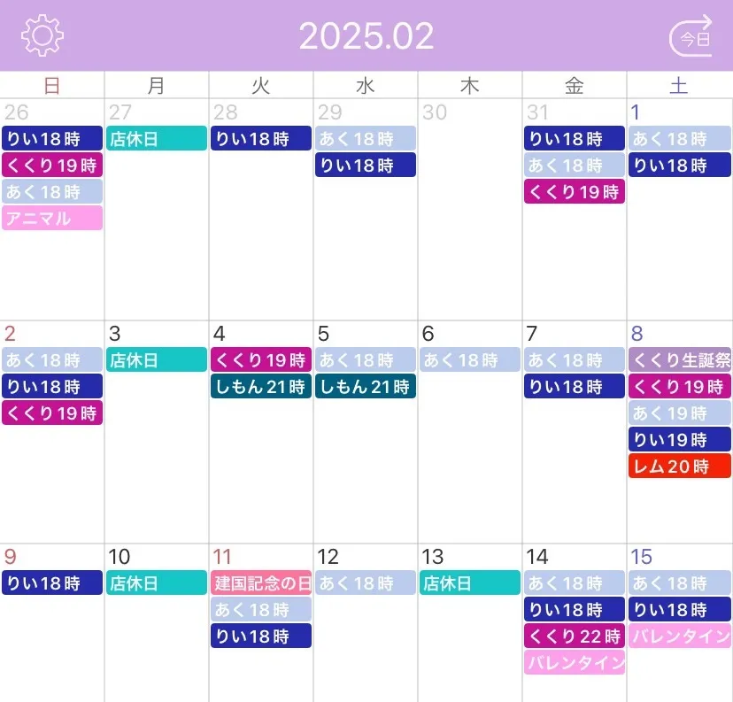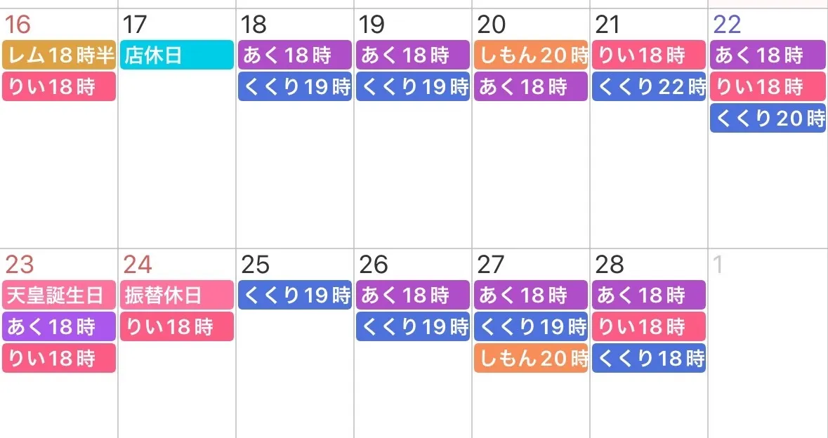 2月前半の出勤予定です。 ★主なイベント予定★ ・2/8(土)くくり生誕祭 (※隣のBarで19時~翌6時迄営業) ・2/14(金)~2/16(日) バレンタインイベント(メイド服&特製カクテル) #大阪 #心斎橋 #ミナミ #コンカフェ #求人 #バイト募集 pic.x.com/S0G8EQctSd