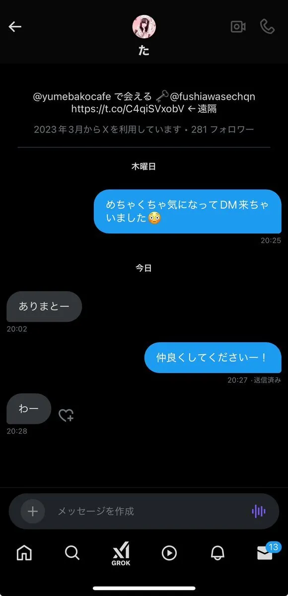 この子からいいね来たから お店が気になって自分から連絡したんやろうけど、この対応はないよな〜😇 一生このお店行かないと誓った今日^^ もちろんコンカフェは無料DM屋さんちゃうし 構って欲しいからDMした訳でもないし 純粋に都内で楽しめるコンカフェを探してて この対応はなんなんやろうね^^ pic.x.com/RMOW4yhL7h