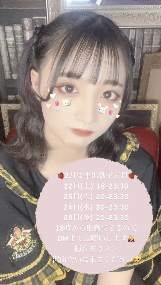 2月前半出勤予定日です! 退勤時間、出勤時間どちらも日によって違う日あるので注意してください⚠️ 実習お疲れ様、周年祝い、隠れ家閉店前で会いに来てください🥺🥺 #コンカフェキャスト #推し不在さんおいで #歌舞伎町コンカフェ #新宿 #コンカフェ #コンカフェ営業 pic.x.com/aRIkhIArhf