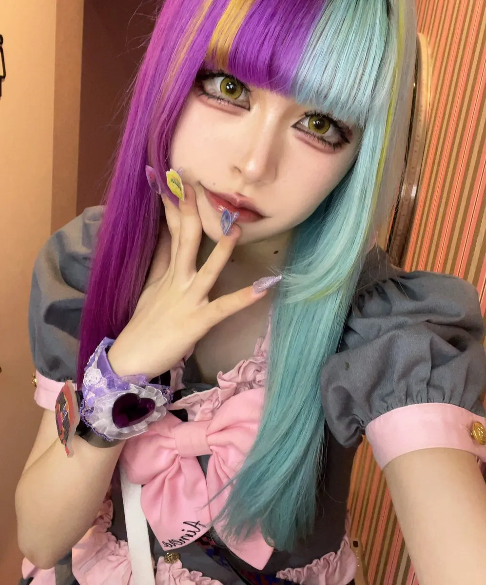 アイメロいます 髪の毛いつも紫の方結んでるけど今日はなんとなく水色側⊂( ᴖ ̫ᴖ)⊃ #コンカフェ #秋葉原 pic.x.com/z95kVEnPfb