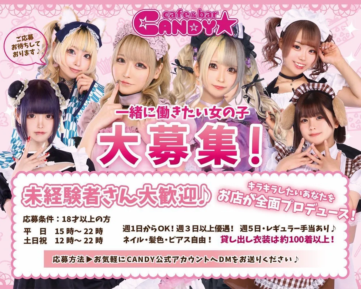 CANDYでは一緒にお店を盛り上げてくれる女の子を大募集しています🙌🏻🍬🎀ིྀ コンカフェに少しでも興味がある子、 未経験者さんも経験者さんも大歓迎です❕ 気になる人は、お気軽にDMで連絡ください(❁ᴗ͈ˬᴗ͈)💌💭 pic.x.com/PbeWcrKu7G