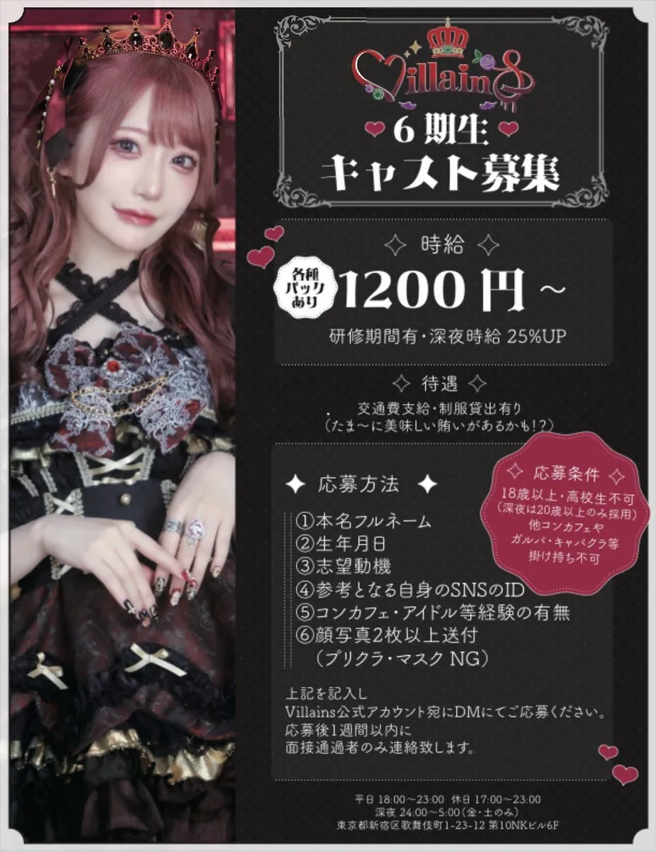 🎀Villains 6期生キャスト・内勤募集🎀 ヴィランズでは本日より 一緒に働いてくれる仲間を募集します💫 今回は内勤さんも同時募集◎ コンカフェが好きな方、コンカフェから色々活動していきたい方、もう一度働きたい!という方もどしどしご応募下さい✨ #コンカフェ #新宿コンカフェ pic.x.com/VQf9SdbQvR