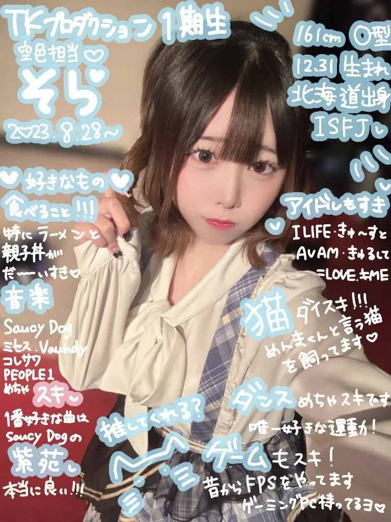 自己紹介作ってみたくて 昨日の夜中一生懸命作ってた🩵 そらのことよく知ってる人も初めましての人も見てみてねー!!໒꒱ 今日も20時からラストまでいますよーー #アイドル #コンカフェ #拡散希望 #自撮り界隈 pic.x.com/ADEo8movkN