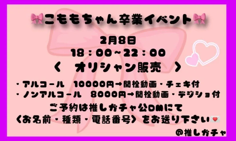 こももちゃんの最終出勤情報です📢 @_marinchan_ 2月8日18:00~22:00 最後こももちゃんに会いに来てください~!キャスト一同お待ちしております💗 オリシャンのご予約もDMにて受け付けております૮ ֊ ̫ ֊ ა #福岡 #コンカフェ #天神コンカフェ #コンカフェキャスト pic.x.com/v1mIu6DnmR