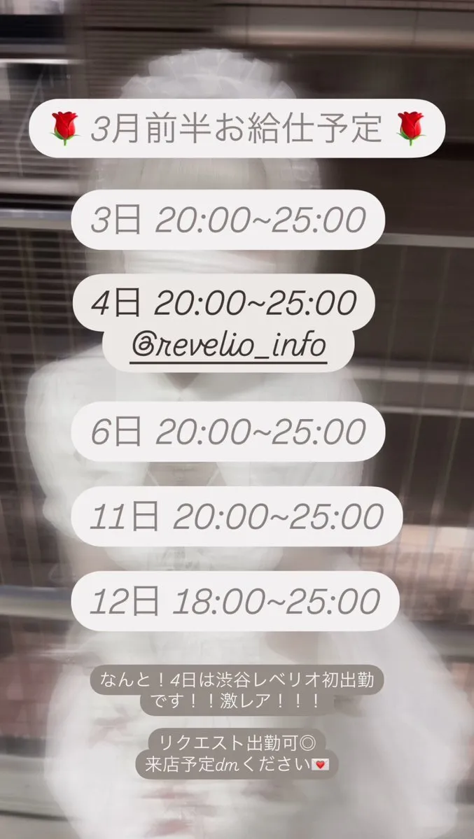 3月前半お給仕予定で~す🫧 なんと!4日は渋谷レベリオ@revelio_info にも初出勤します!!!いつもと違うえむち見れます👍🏻🖤⟡.· ローゼン周年月でもあるので、めちゃくちゃ周年オリシャン飲ませてください!!! #コンカフェ #コンカフェ営業 pic.x.com/McyZHGoNpb