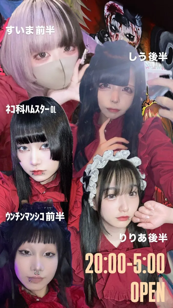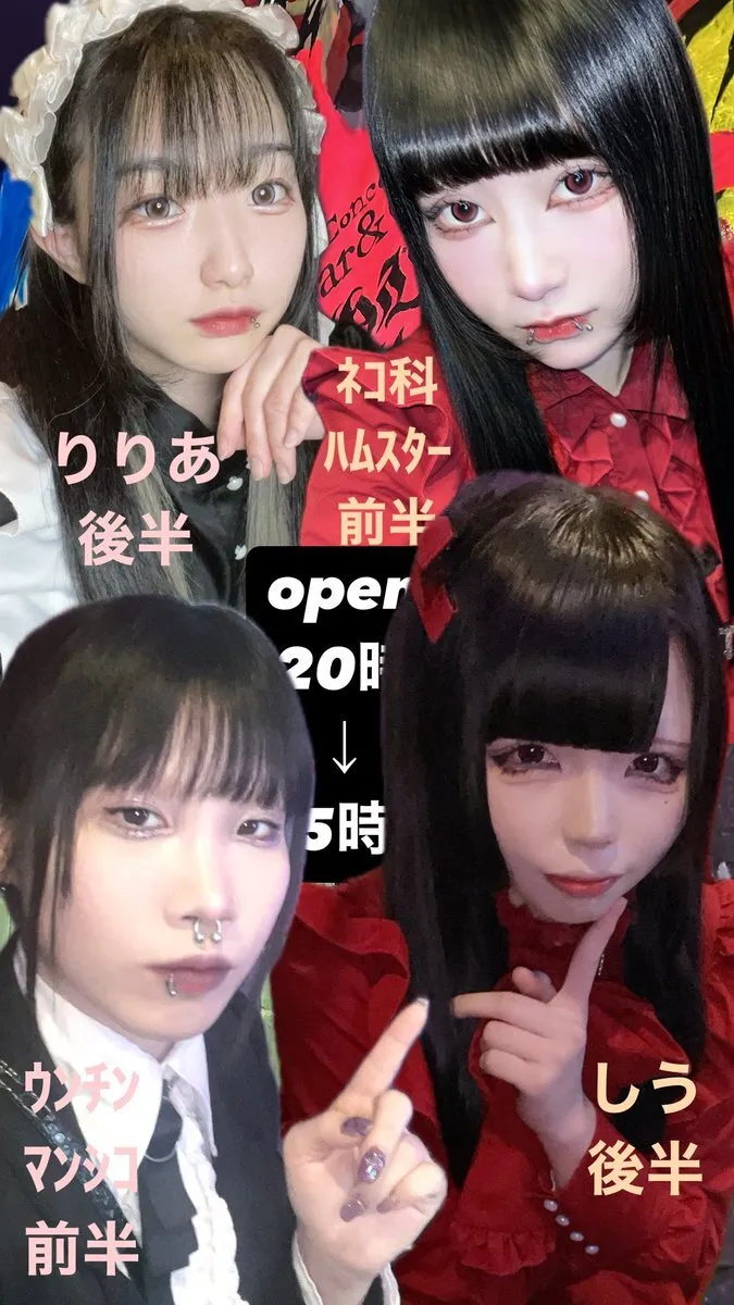 ⛪️本日のキャスト⛪️ -𝙊𝙋𝙀𝙉-20:00~5:00 OL🩸ネコ科ハムスター @neko11ko 前半🩸すいま @mu_ri_babu 前半🩸ウンチンマンシコ @Un_Cn_Mn_Sk 後半🩸しう @fez4d 後半🩸りりあ @4lIx_x04 #コンカフェ #コンカフェ大阪 #ミナミ #宗右衛門町 #コンカフェ好きな人と繋がりたい pic.x.com/aRXTpDBrMv