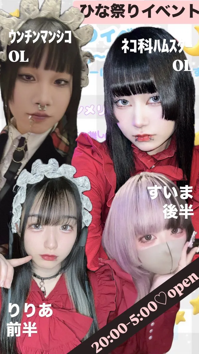 ⛪️本日のキャスト⛪️ -𝙊𝙋𝙀𝙉-20:00~5:00 🌸ひな祭りイベント🌸 OL🩸ネコ科ハムスター @neko11ko 前半🩸みらい @menhera_victor 後半🩸ウンチンマンシコ @Un_cn_mn_sk #コンカフェ #コンカフェ大阪 #ミナミ #宗右衛門町 #コンカフェ好きな人と繋がりたい pic.x.com/fhjDI8SI00