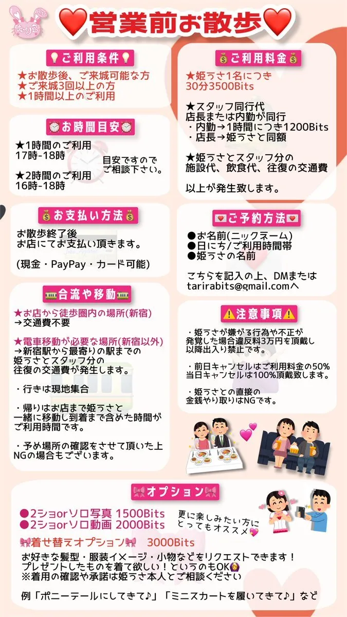 🐾営業前お散歩🐾 ご予約殺到中🔥 大好評の営業前お散歩💖 コンカフェでは珍しい 新サービスを提供いたします✨ 「姫うさと行きたい場所がある❣️」 ご飯🍽️やダーツ🎯 ボーリング🎳など🎵 私服の姫うさを独占して お好きな場所へお散歩できます🐰💋 ▼ご予約やご相談 💌tarirabits@gmail.com pic.x.com/w8Dn1wOQDK
