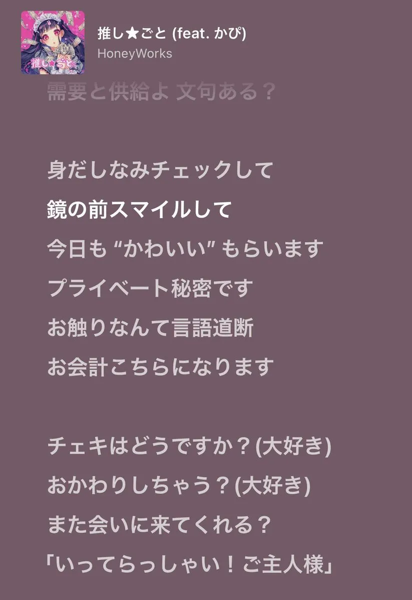 コンカフェ嬢の歌詞にしか 聞こえない() pic.x.com/7kL3jjUVhB