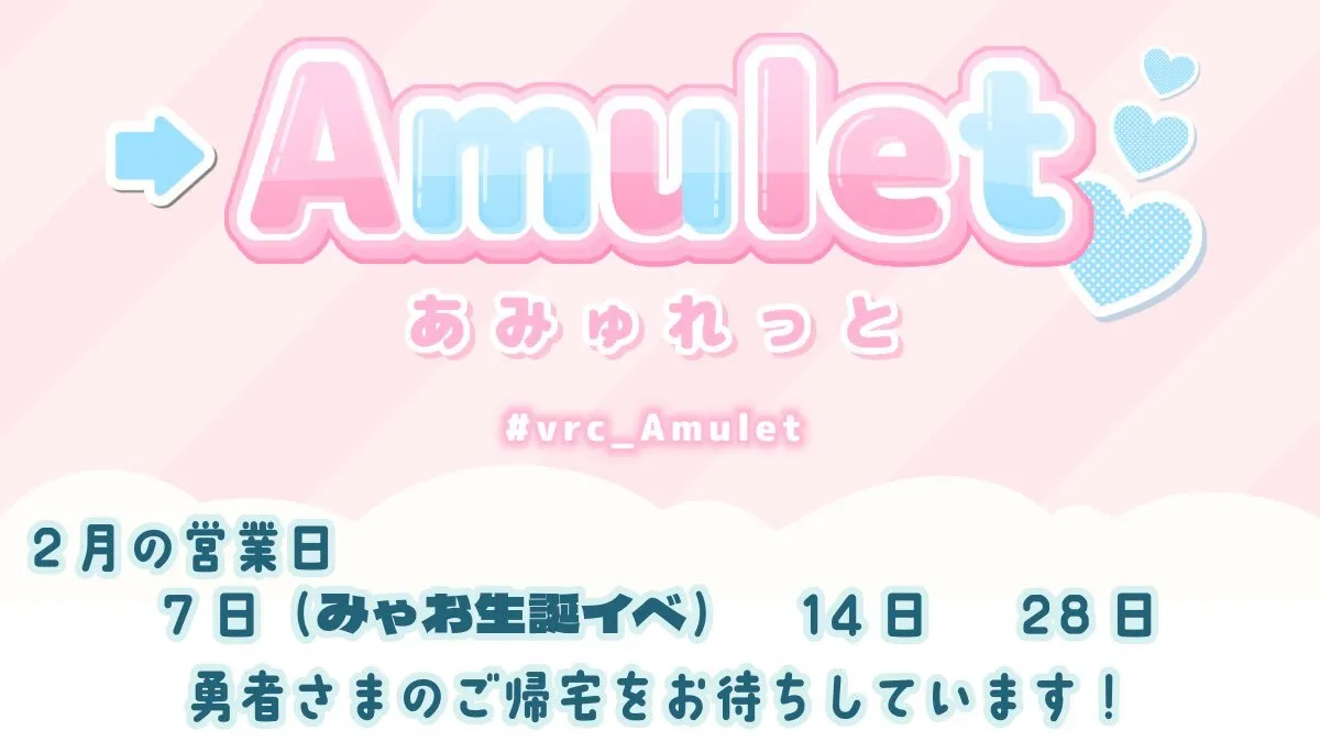 1/31New Open! お帰りなさいませ、勇者さま! 現役コンカフェ嬢プロデュース!VRCで最もリアルなコンセプトカフェイベント ✨メイドカフェAmulet✨ 2月の営業日のご案内 7日はみゃお生誕イベントです! たくさんの勇者さまのご帰宅をお待ちしております! pic.x.com/xE5hXOCW9u