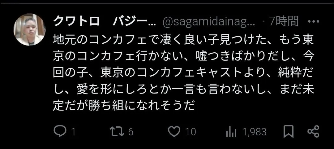 コンカフェ嬢なら誰でもいいんかい 考え方がキモすぎる あとTikTokerどうなった pic.x.com/suhTh7cRKE