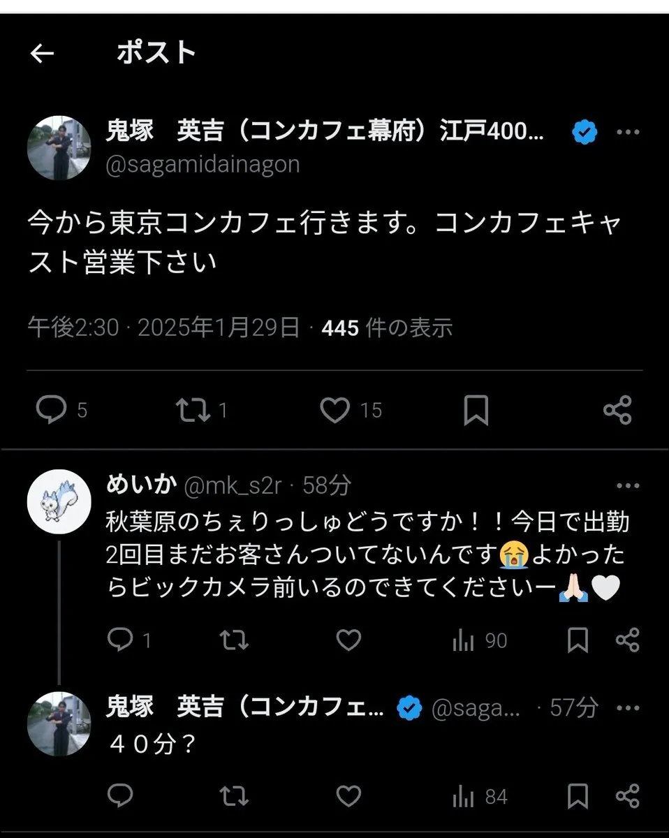 4月にコンカフェ嬢と付き合うとか言ってたのに終わったのかな pic.x.com/jb5Yl66GTD