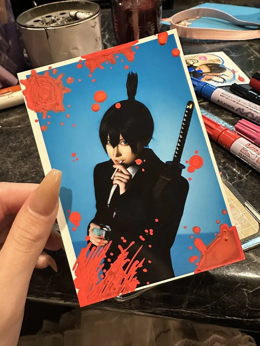 ブロマイドを血の落書きで塗りたくるコンカフェ嬢 pic.x.com/EsTxWUAHOq