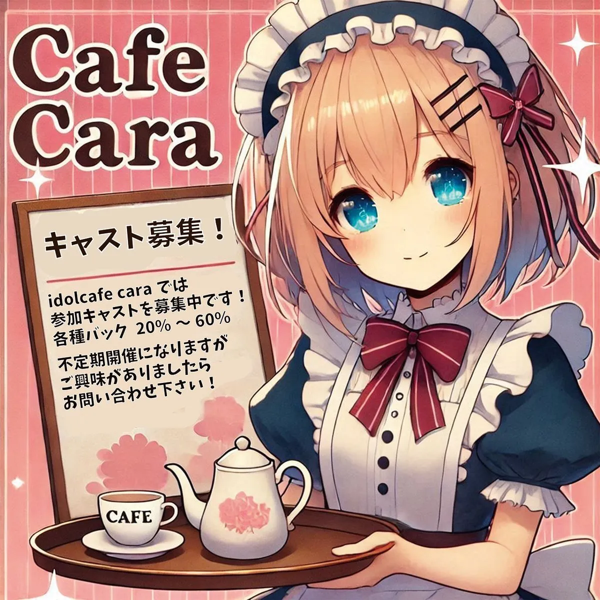 【キャスト募集中!】 カフェイベントの女性キャストさんを募集中! アイドル中心ですが他ジャンルの方も参加しています! 2/23(日) 末広町(秋葉原) 14時~20時(予定) 3/15(土) 池袋 13時~20時(予定) DM,メールでご連絡下さい! #拡散希望 #募集 #コンカフェ pic.x.com/SIVtxkcvIb