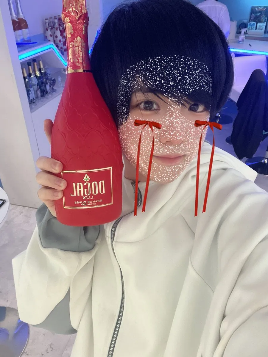 おきゅいん! これからコンカフェ界隈で流行るシャンパンだよぉ!!! 愛と情熱の赤です!👍 さとると一緒に乾杯しましょっ!🥂 #コンカフェ #池袋 #自撮り界隈 #メンズコンカフェ pic.x.com/YcqBk1lj5w x.com/maria_mahokake…