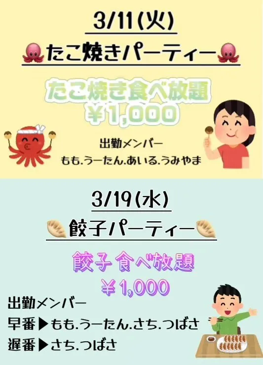 わんちゃんすオープンしました❣️ 🍻20時までハッピーアワーでドリンク半額🍻 もも うーたん める うみやま でお待ちしております! #秋葉原 #コンカフェ ⬇️イベント情報⬇️ 11日(火)たこ焼きパーティー🐙 14日(金)ザビ子さんゲスト 19日(水)餃子パーティー🥟 21日(金)みのうらさんゲスト pic.x.com/zJpIOg0MvB