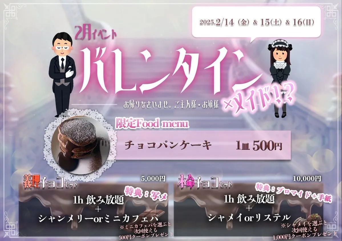 14日.15日 バレンタインイベです🎀♡ メイドのコスプレやるよん❕❕❕ 義理チョコセットと本命セット 特典あるしうちゃんからプレゼントも あるので是非頼んで他のコンカフェより絶対お得だもんっჱ̒⸝⸝•̀֊•́⸝⸝)♡ pic.x.com/7ZJS7pYZo0